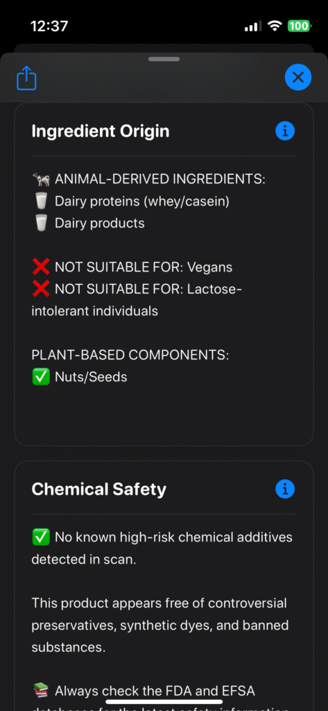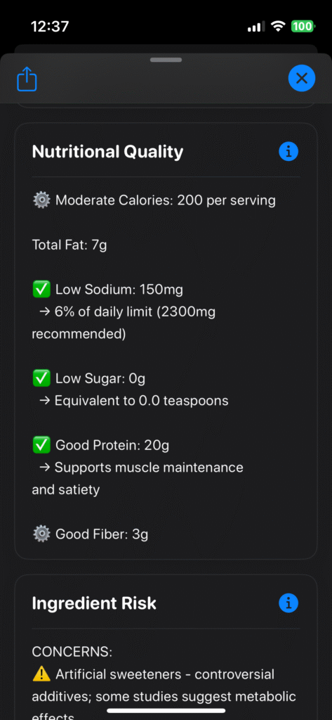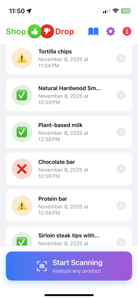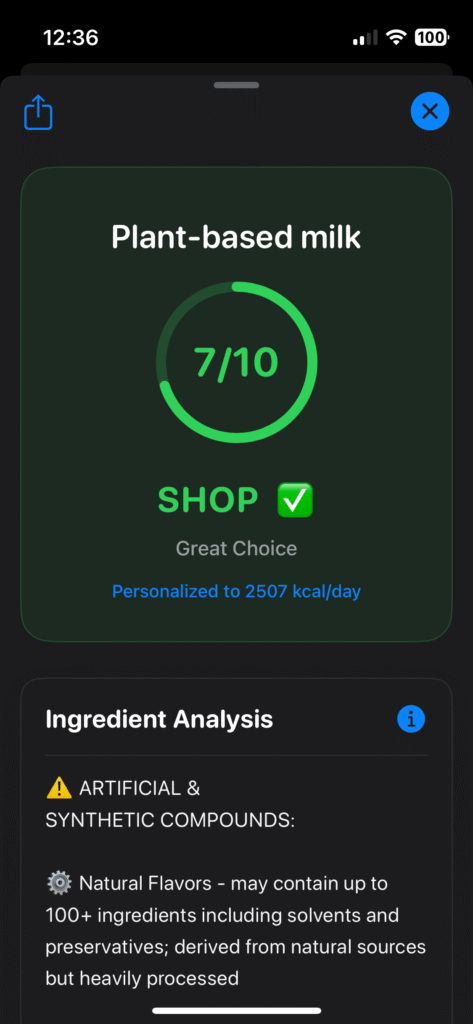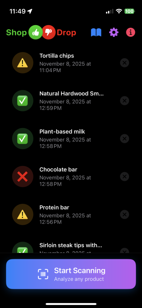 Scan or Snap, Unlike other apps that stop working when a barcode isn’t recognized, Shop or Drop offers multiple manual input options so you can still get an analysis by typing, taking a photo, or describing the product. This flexibility ensures you’re never left without an answer. Our AI-driven analysis also goes far beyond basic nutrition facts. It’s built to think more like a nutritionist, evaluating your food from multiple angles—nutritional science, health impact, and ingredient transparency—to help you make smarter and more informed decisions. And while other apps rely on cloud processing or sell your data, Shop or Drop keeps everything private, local, and secure right on your device.
